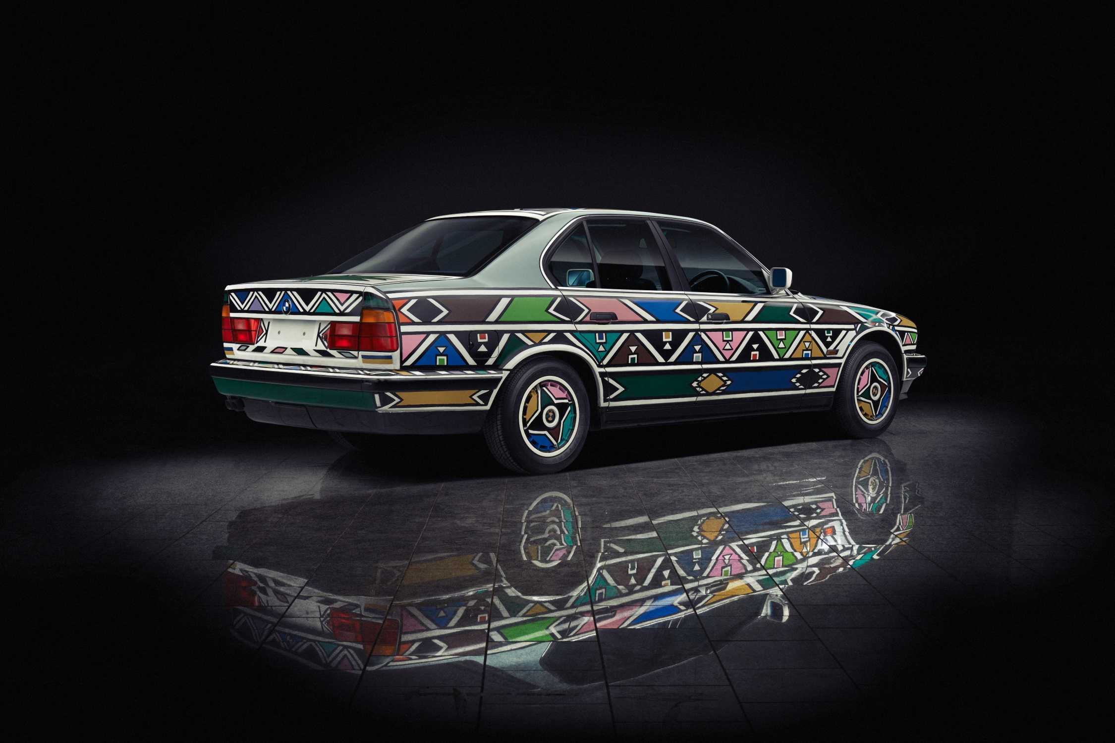 A mix of symbols and stylized figures that seem to come out of a futuristic prehistoric cave. Penck's M3 GTR is perfect for being an asphalt warrior. Two colors that the artist mixes without giving us his own interpretation, each of us can see in it what we want.12. BMW 525i (1991) - Ester Mahlangu