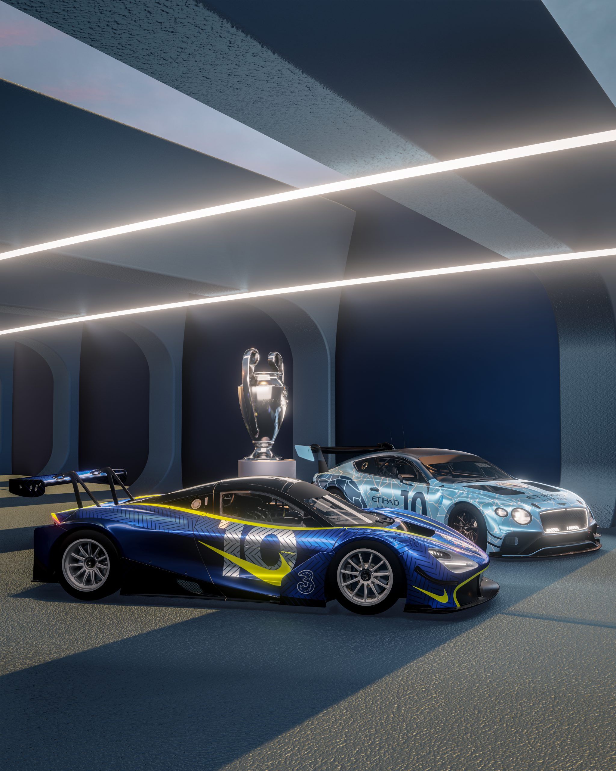 The final for the 66th edition of the UEFA Champions league 2020/21 between Manchester City and Chelsea FC will take place tomorrow at the iconic Estádio do Dragão, in Oporto.This will be third final in the history of the Champions League to see two British teams compete agains each other. For this week’s CGGI (Computer Generated Garage Italia) we wanted to take inspiration from the identity of the two British clubs.Seen the extreme level of competition of the match, the GT3 championship seemed the right way to go. Our two contenders are the McLaren 720s GT3 and the Bentley Continental GT3. Both of them wear the colors and the patterns of the two teams. We can’t wait to see who’s best. Who do you support?