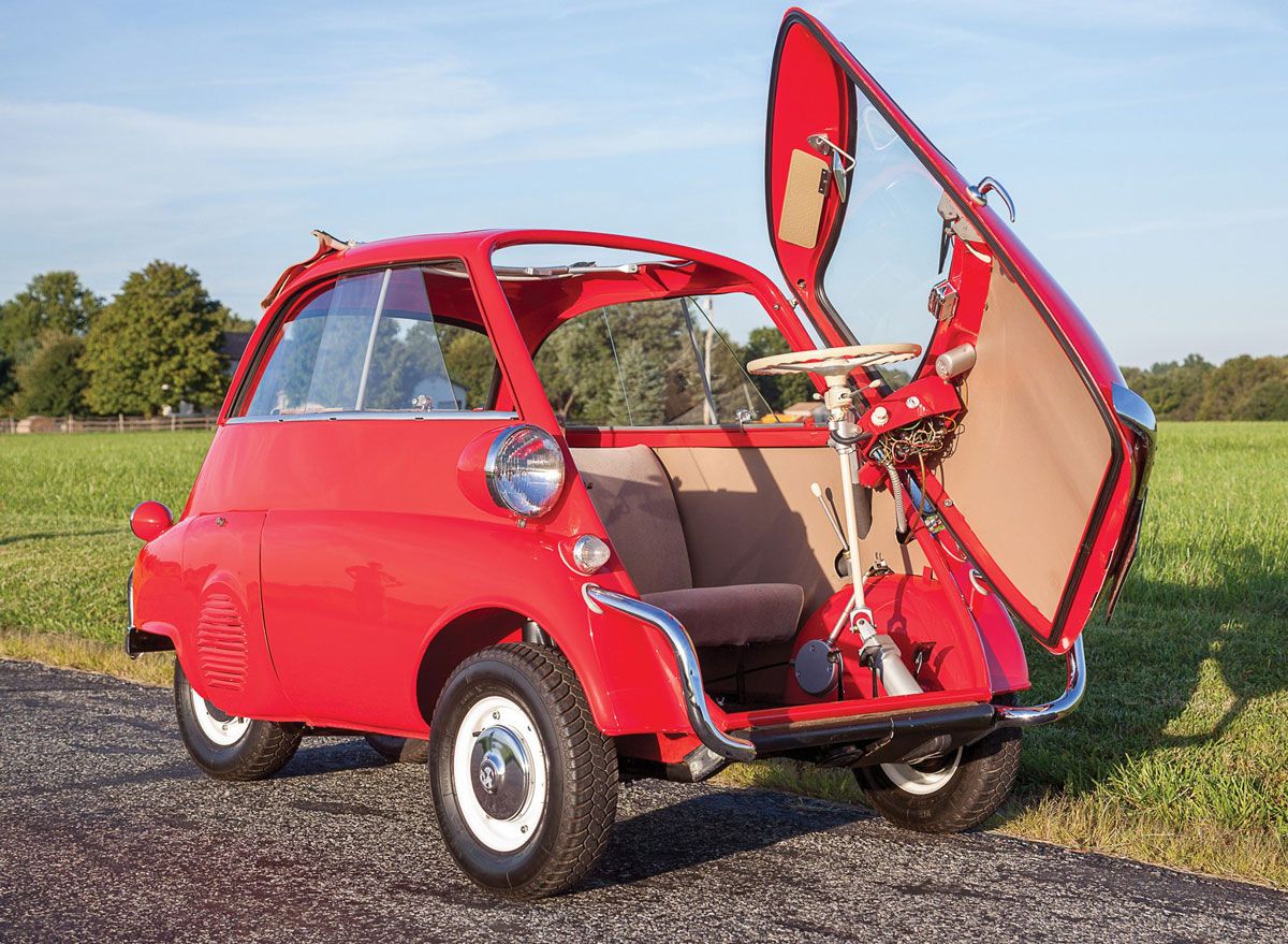 A co-production between Italy and Germany from 1953 to 1962, the BMW Isetta is probably the most famous microcar of all time.Originally designed in Italy by Iso Rivolta, BMW bought the rights and turned it into a huge success.With a 245 cc single-cylinder engine, it could reach a top speed of 85 km/h.