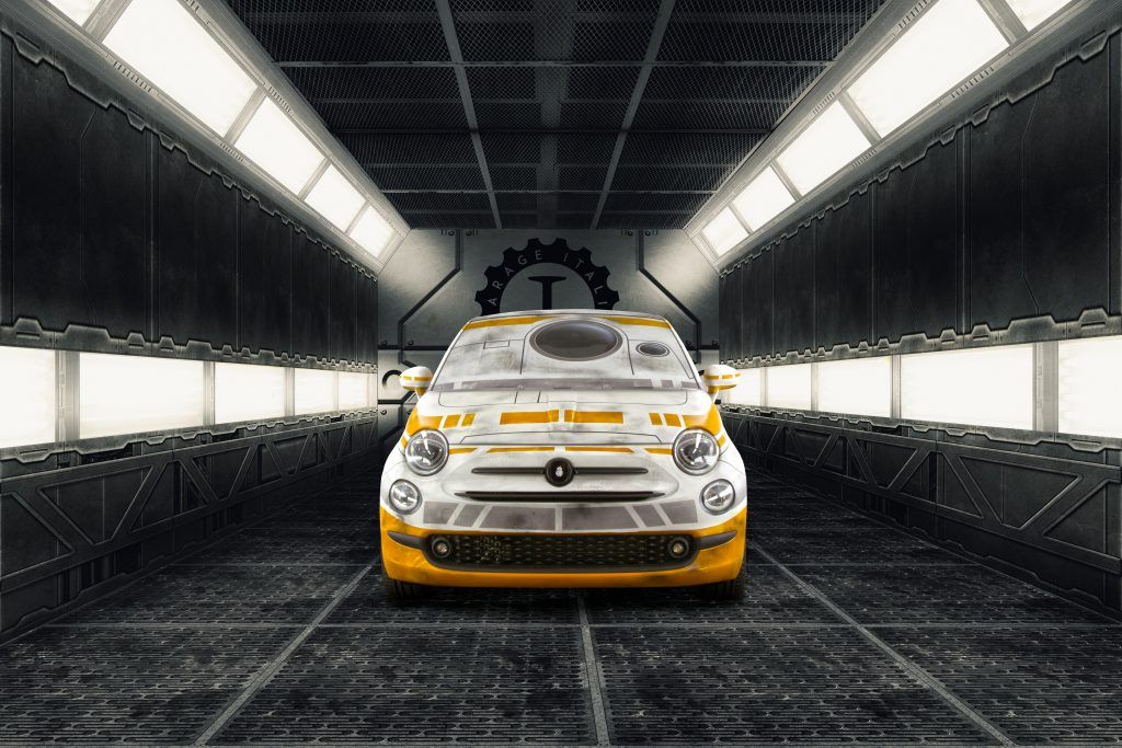A few years ago, on the occasion of the release in European cinemas of the seventh episode of Star Wars: The Force Awakens, we made two special 500s together with Fiat inspired by the drones of the film and renamed BB-8 and R2-D2, accompanied by the 500e Stormtrooper presented at the Los Angeles Motor Show.Twelve cars identical to the Fiat 500e Stormtrooper were presented at the film’s premiere in Spain, Germany, Sweden, Denmark, the United Kingdom and Turkey. The invasion of the 500th Stormtrooper was joined by the world premiere presentation of two new models dedicated to the drones protagonists of the film, R2-D2 and BB-8, for projection in Switzerland.