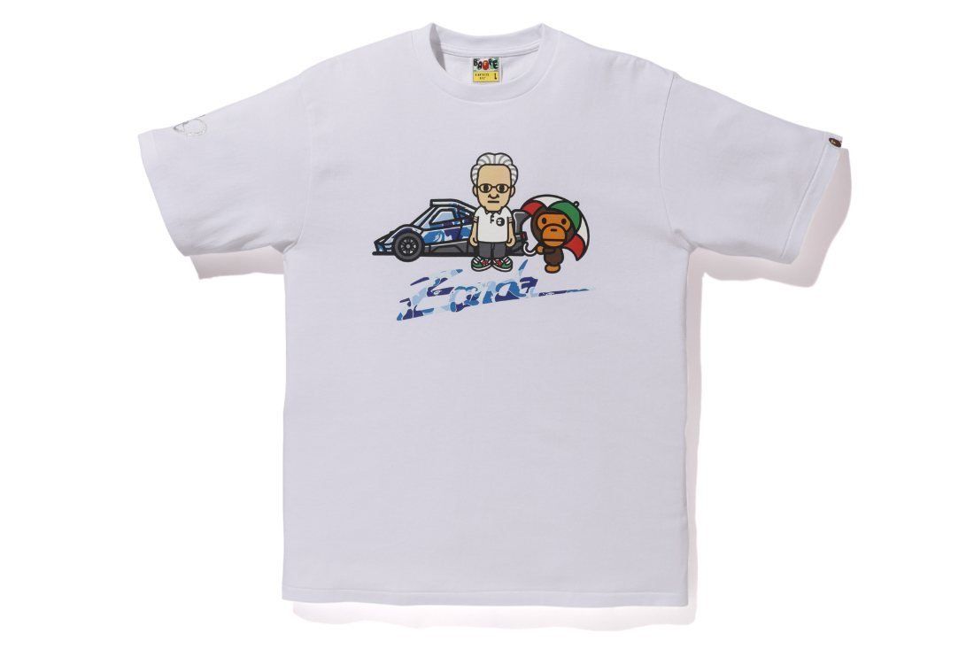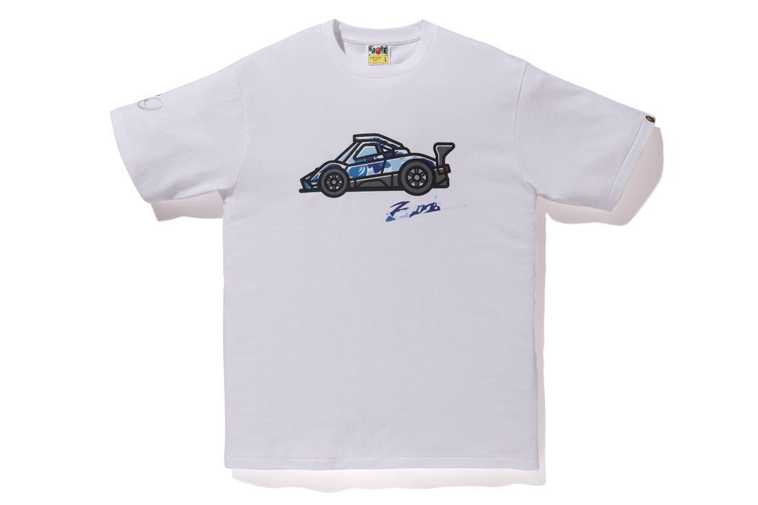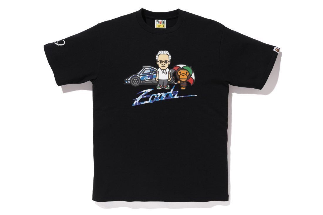 The collabo also gave life to a Bape capsule that includes a hoodie, tees, a cap, two cotton shopping bags and assorted stickers.It is curious that the founder of Pagani Automobili, Horacio Pagani, also willingly lent his image to a rework in perfect Bape style, which became one of the most appreciated graphics of the entire collection.