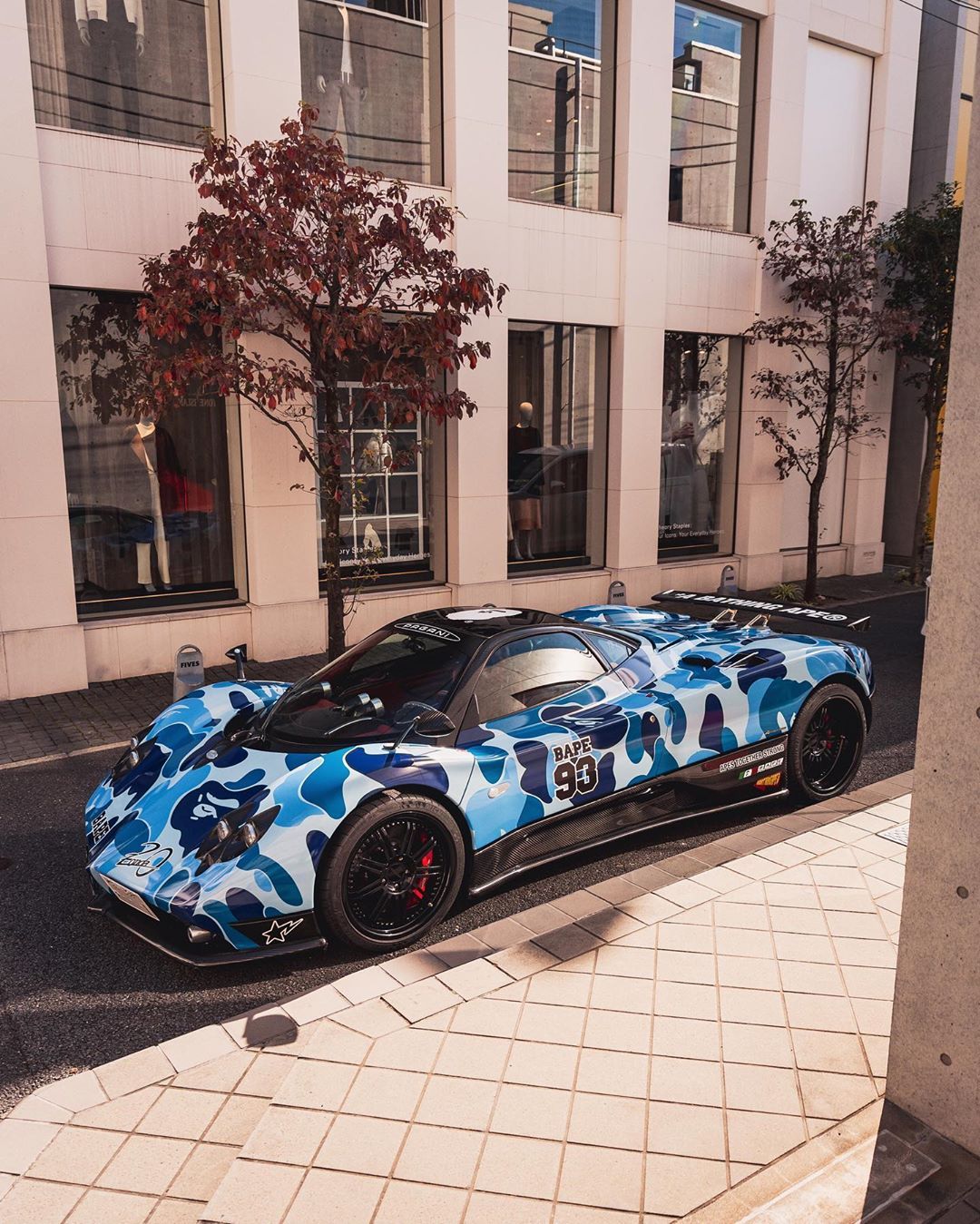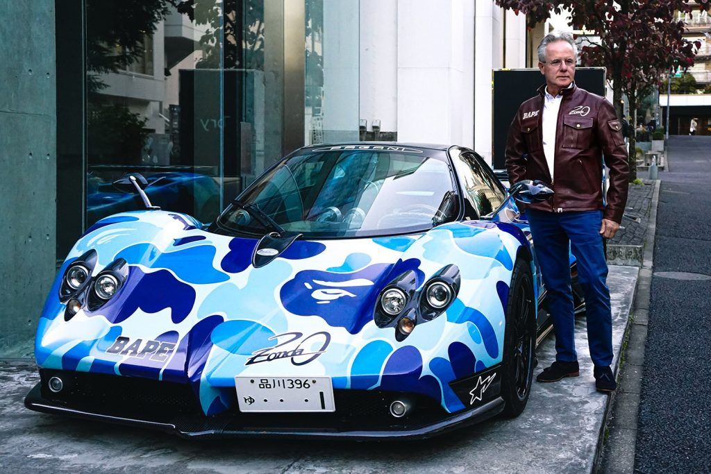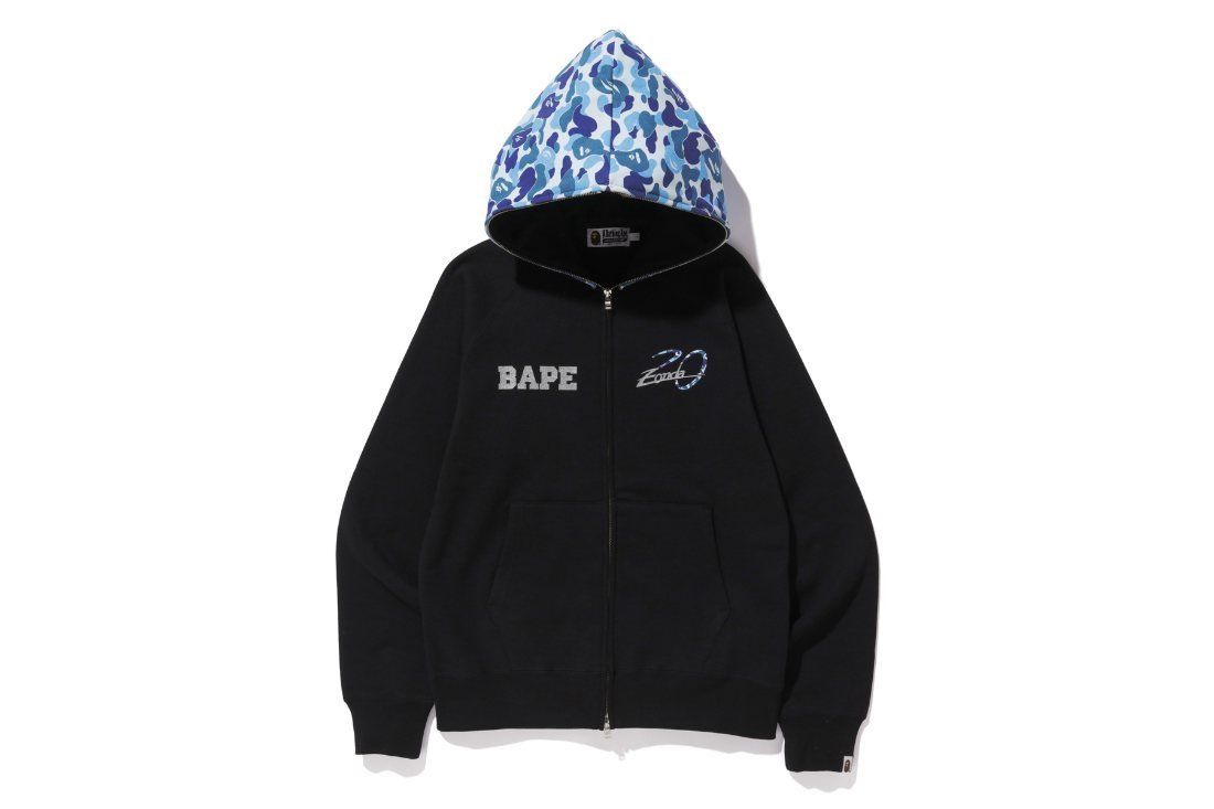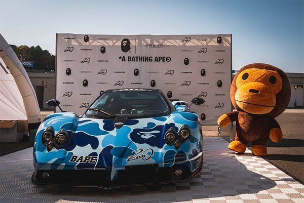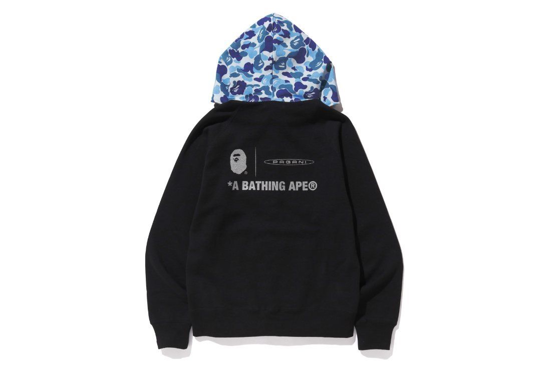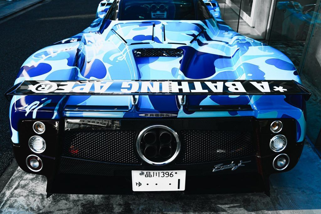 One of the most interesting collaborations between car manufacturers and streetwear brands was the one between Pagani and A Bathing Ape on the occasion of the 20th anniversary of the birth of the Pagani Zonda.The company from San Cesario Sul Panaro, that you also remember for the Huayra Lampo, the four-handed one off with us from Garage Italia, confirms to be one of the most open minded and receptive to new trends: proof of this is the decision to launch the collection during the Suzuka Sound of Engine 2019, setting a pop-up store and the display of a Zonda wrapped in the iconic camo ABC pattern in full blue and decal Bape.