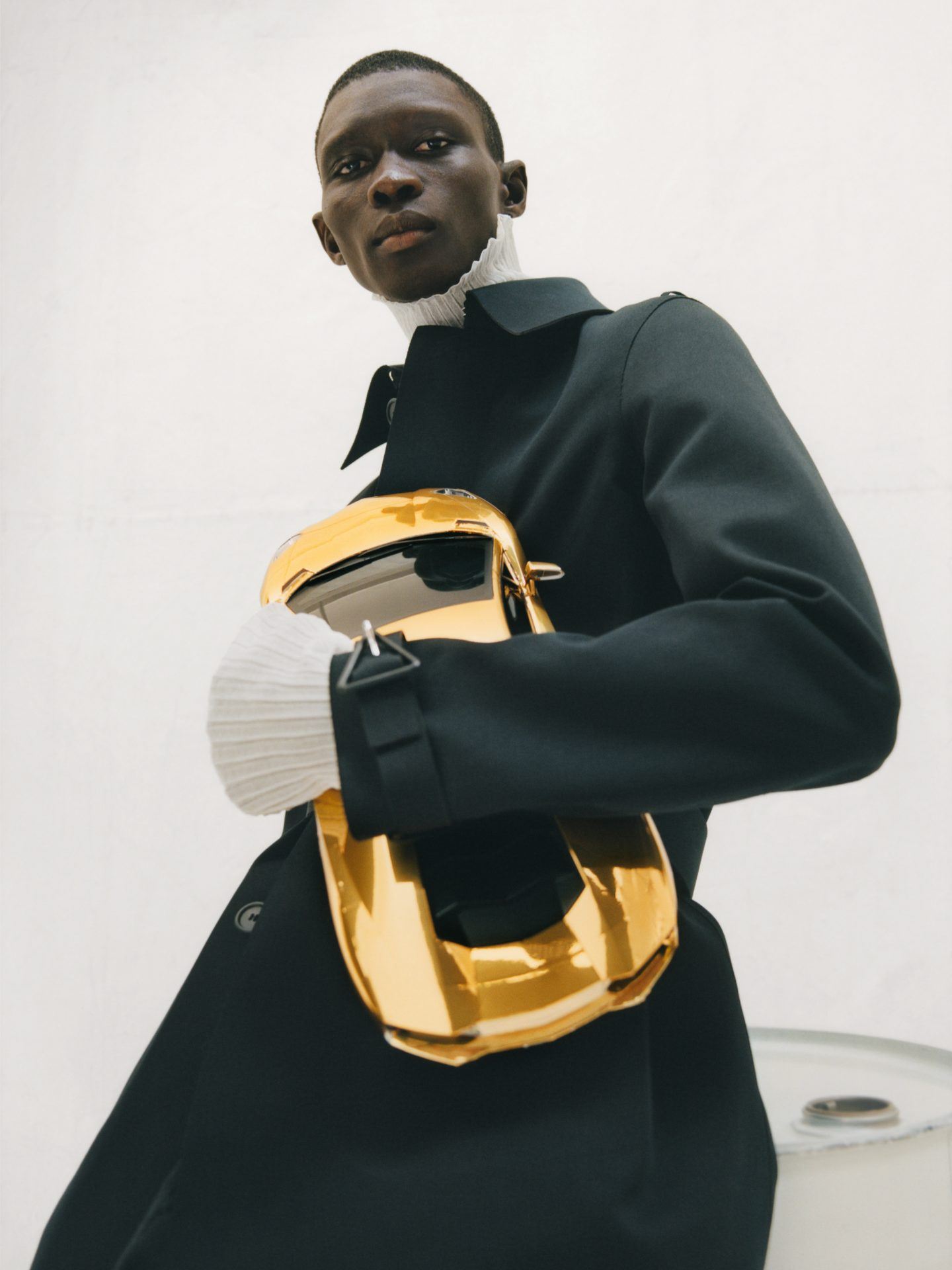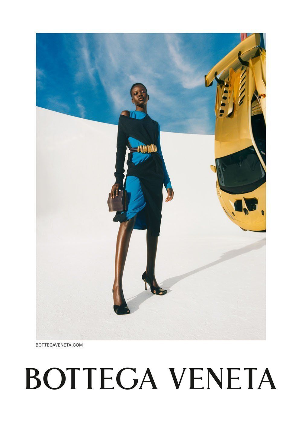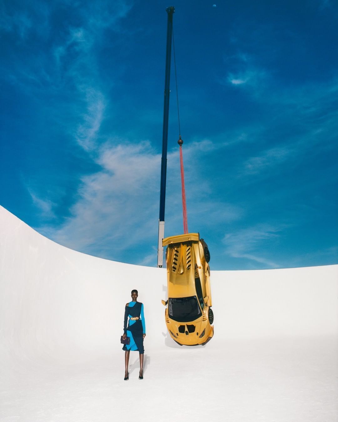 When fashion meets motors the result is always something unexpected. We have seen how much in recent years, cars have played an increasingly central role in different outputs of the fashion universe, just think of the myriad of models present in the most recent photographic campaigns, editorials and fashion shows.Just tink about Daniel Lee, creative director of Bottega Veneta and his explorative journey, who broadens his horizons by presenting the campaign created with Tyrone Lebon for the FW2019 collection of the brand. A new vision of modern luxury materializes in the aseptic dimension that frames the London photographer’s shots. An icy and bare location, a concrete basin illuminated by the sun shining on Joshua Tree, southern California. A setting as surreal as it is clean and essential, in which the photographer’s eye captures a pure gold Lamborghini floating vertically that almost takes on the appearance of a monolith in which some see a resemblance to the contemporary works of Mexican Gonzalo Lebrija. The change of perspective is reflected on the clothes, innate codes of elegance, in a subtle play of contrasts between lines and cuts, between desire and the dualism between man and machine that is, after all, the core of the shots of the campaign.
