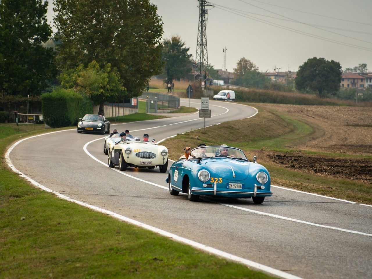 In the mid ‘50s Max Hoffmann, the famous Austrian importer of Porsche for the American East Coast, realized the potential on the Californian market of a new and more essential variant of the Porsche 356. He therefore asked the German company to study and build a cheaper version of the 356 America Roadster, that was too expensive for that market. This is how the Porsche Speedster was born, available in only 1000 units, in only three colors: red, white, blue. This last color variant is the rarest, in fact there are only 60 in the world.Let’s see what happened at the start of the race in Andrea Luzardi’s shots.