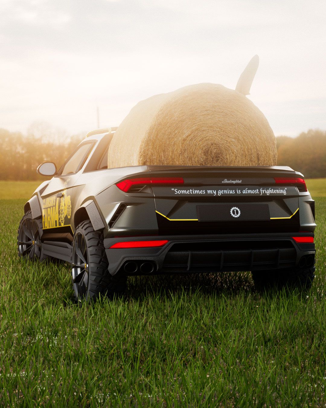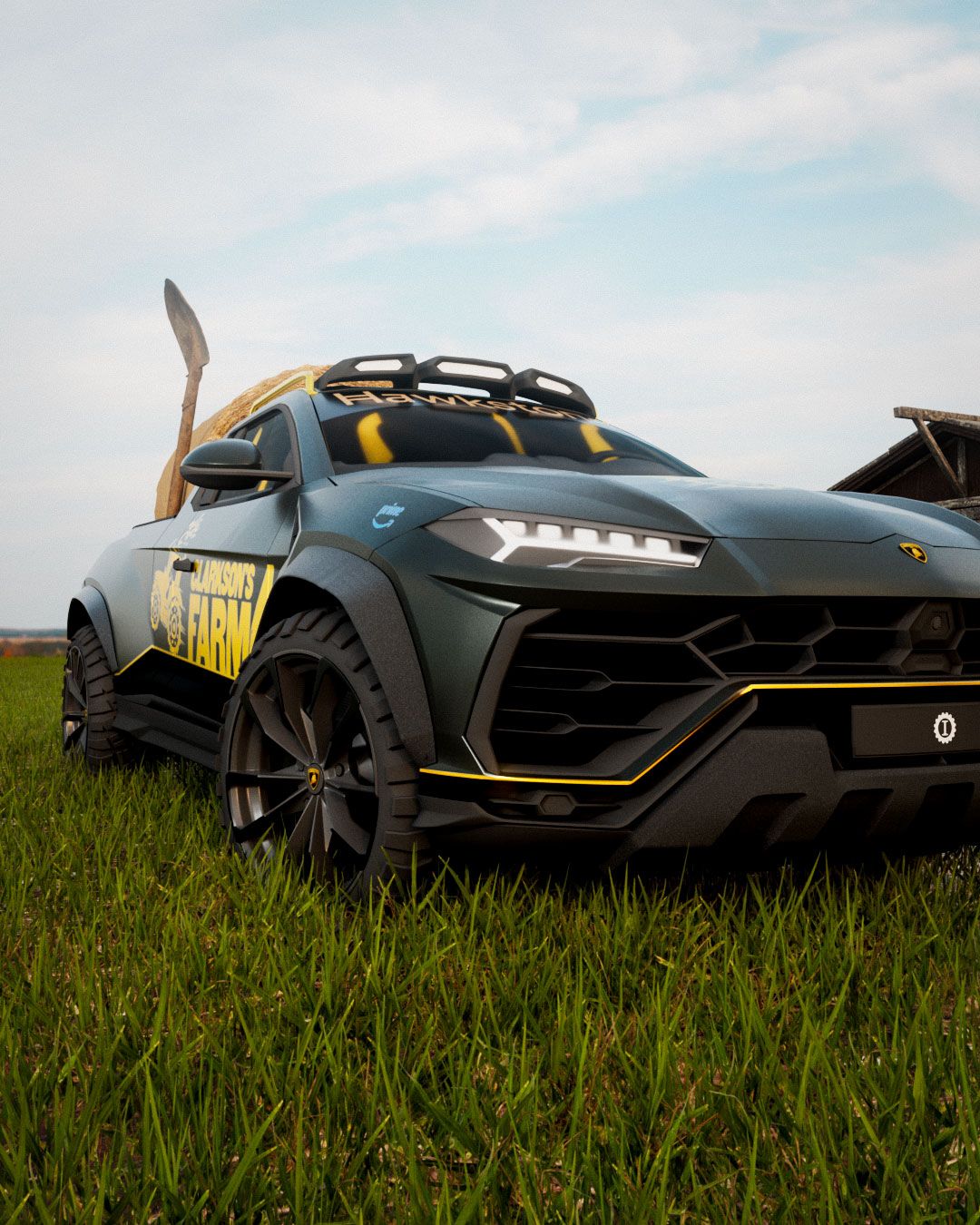 We created a new CGGI dedicated to Jeremy: a Lamborghini Urus turned into a pickup, perfect for hauling hay bales, bottles of craft gin — or simply his ego. Always in style.