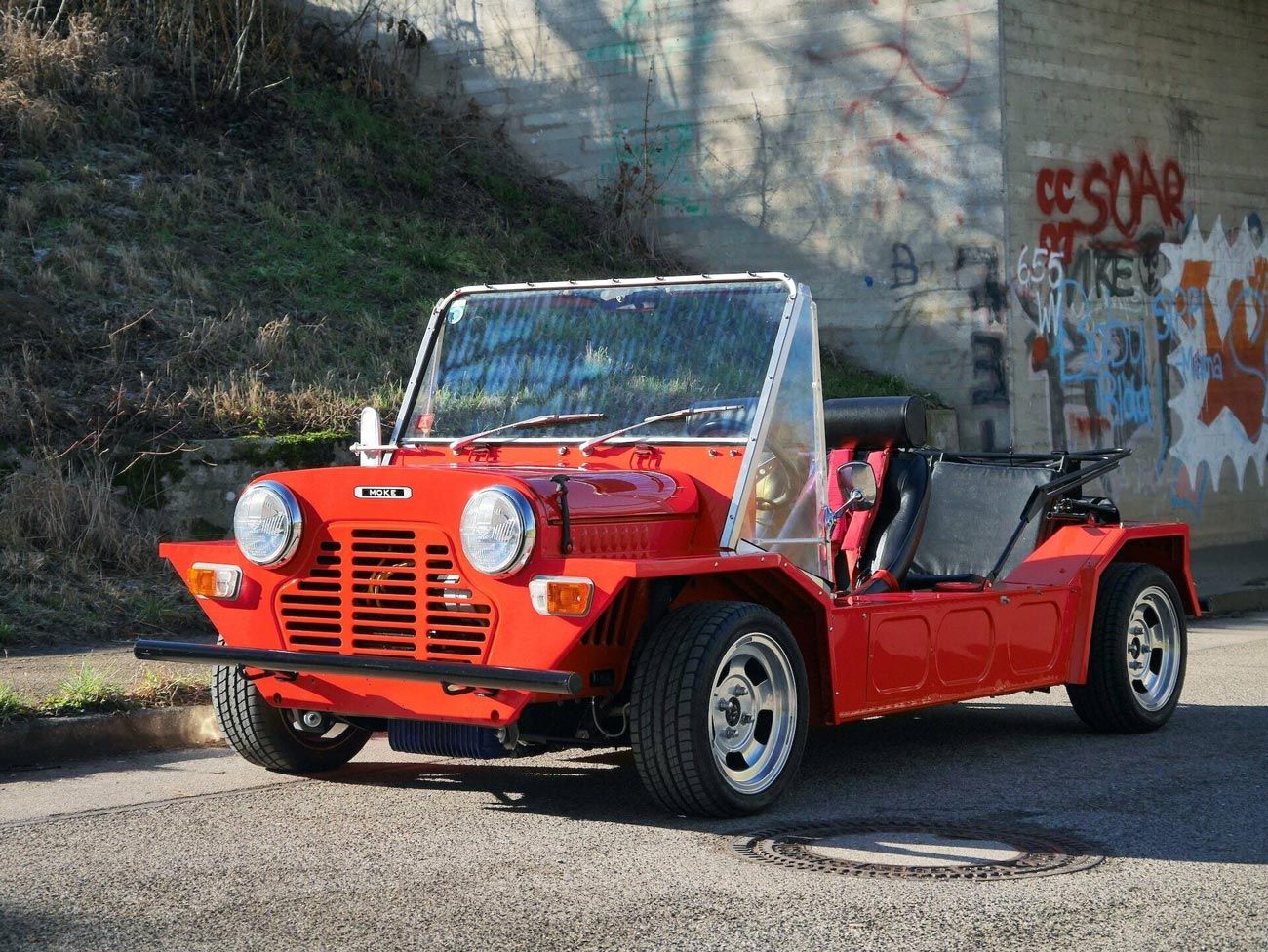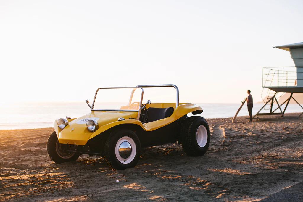 Here, a whole world opens up. Dune Buggies, born in the USA in the 1960s, are the ultimate symbol of the Californian beach lifestyle.Lightweight frame, fiberglass body, air-cooled Volkswagen engine, and no doors — pure freedom on wheels.There are countless versions out there, some handcrafted, others more polished. And in recent years, they’ve been enjoying a second youth thanks to the growing interest in cool vintage vehicles.Mini Moke: the beach ride of the stars