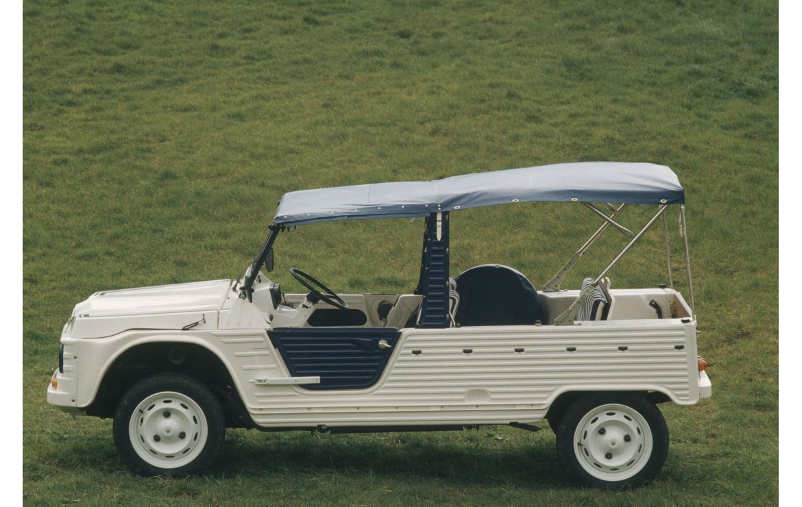 Among the undisputed stars of this list, our Spiaggina simply can’t be left out: a contemporary reinterpretation of the classic beach car concept.Wicker seats, a sunshade instead of a roof, and no doors — this tiny 500 transformed into a seaside icon was, for years, the go-to ride for VIPs along the Ligurian Riviera and the Amalfi Coast.The Spiaggina was made for seaside life: open-air, lightweight, colorful — perfect for summer nights or a sunset aperitivo by the sea.A small gem that never goes unnoticed, turning every ride into a stroll along the Riviera.Citroën Méhari: the queen of the sand