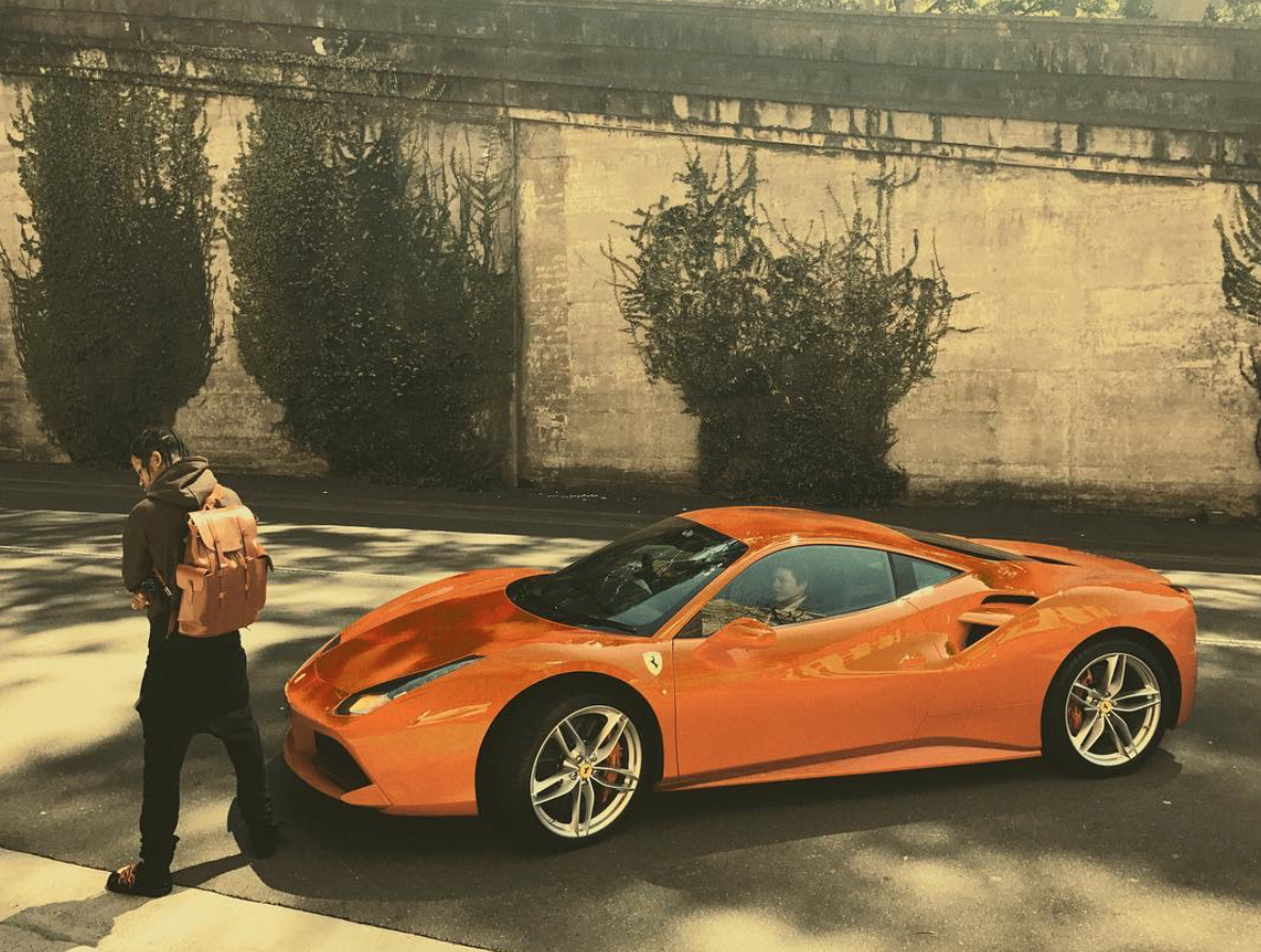 Scott’s Lambo Aventador, customized by West Coast Customs, has been finished with a matt brown chocolate bar effect paint, only with a V12 instead of sugar. Oh, the guy also has a Range Rover in the same color. So sweet!La Flame’s Ferrari 488, a 670 horsepower twin-turbo V8 engine, is literally ‘flaming’ in its burnt orange livery.