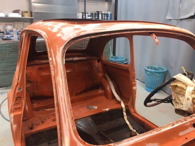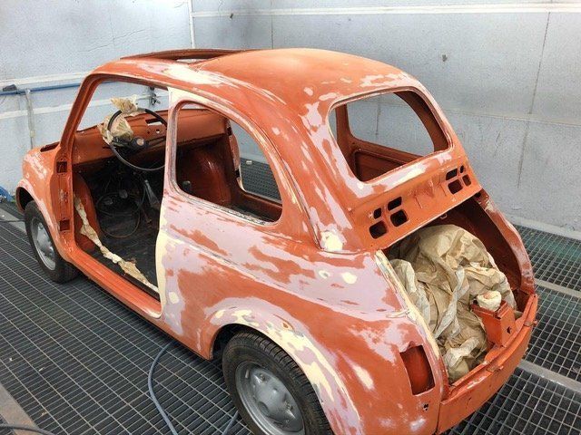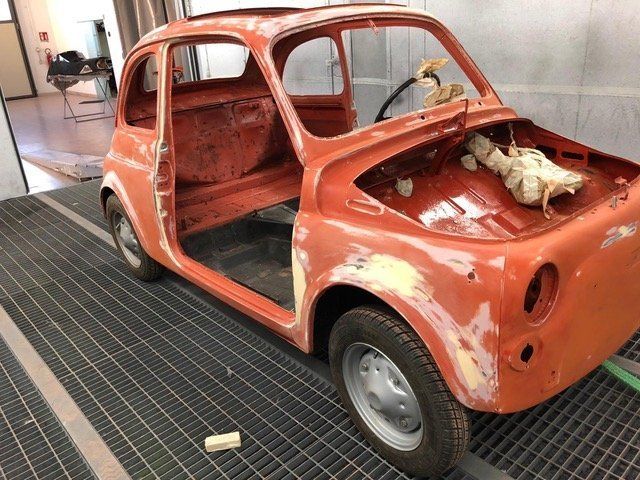 The story of how we customized this red Fiat 500 is very particular. Well yes, first of all because at the beginning of the story this red Fiat 500 wasn’t even there!We got contacted by a client, an Italian who lives in the States who likes what we do. We met him at the Garage and after a couple of appointments in our showroom he is convinced. He wants us to customize a classic 500: no problem, except that he doesn’t have a 500 yet! So we assisted him in the process of purchasing a donor car, generally a used car, which will then be customized. Exactly as we do with our Jolly Icon-e, born with combustion engines that we switch to electric in their second life. But let’s go back to us, or rather to her. The photos you see here below leave no room for interpretation: at the beginning, the car needed a massive restyling.