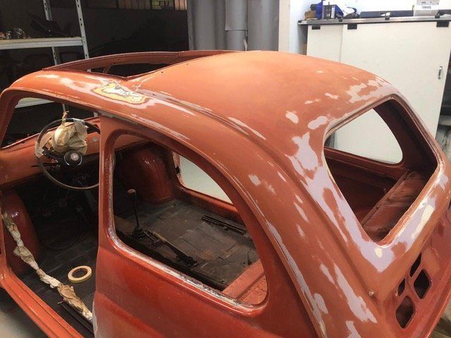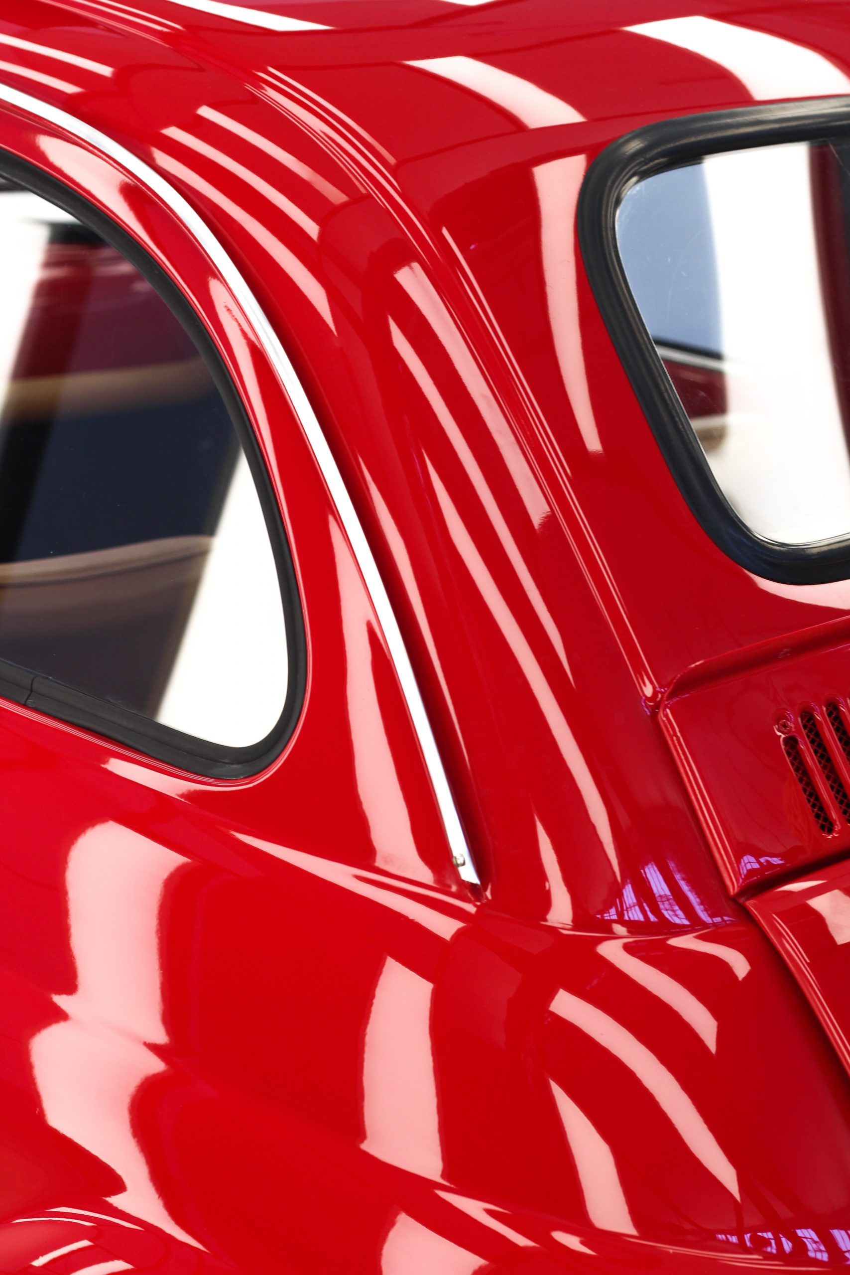 The car has been completely restored and repaired in the parts most subject to wear, then repainted the exterior with the color chosen by the customer, a red with a glittery component that gives it an incredible shine, doesn’t it? (R-M SR 169.50 Trasparente + Glitter PRLX PPG) .The rims, both the front and rear bumpers as well as the luggage rack, have been replaced with new aftermarket components.