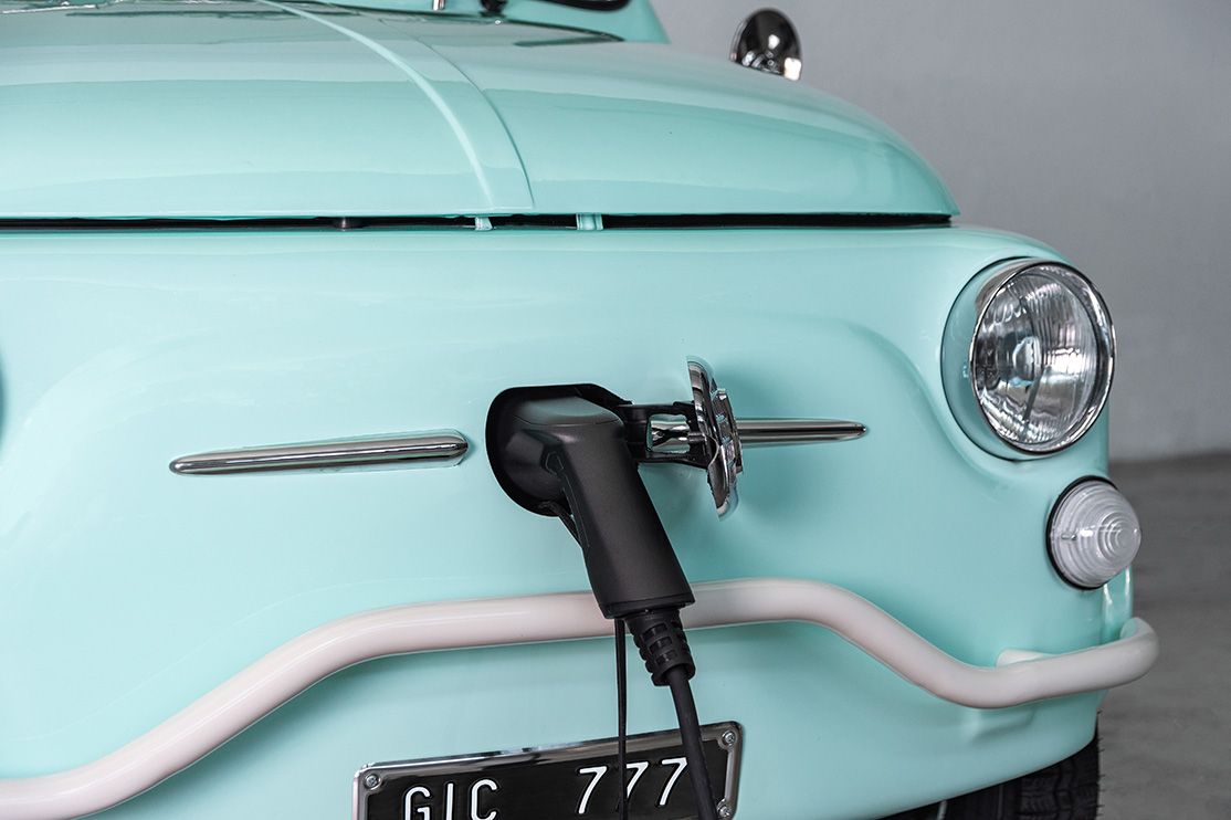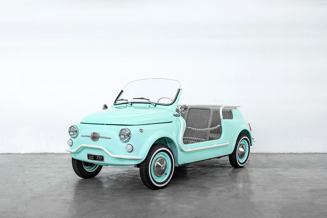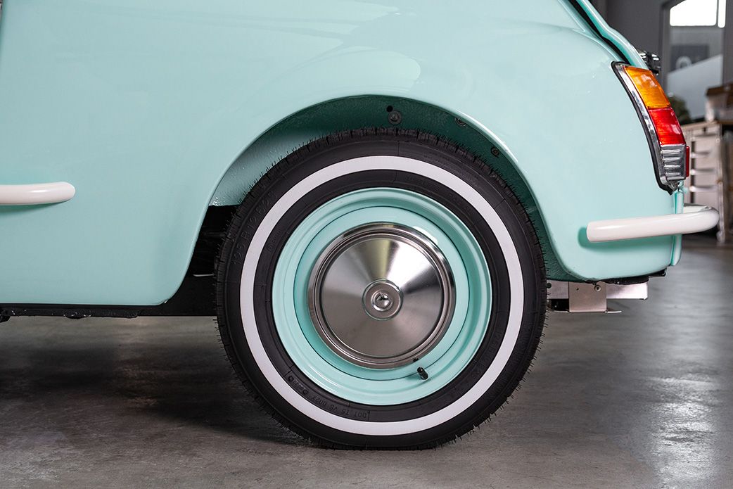 An icon of the Italian design, now available in a full-electric version.The roof it’s been cut off from the donor car, same for the doors: the stability of the car is maintained by a safety cell. The Donor car of the 1970s was tested and approved for regular road use in 2022. The external protections are hand-molded, as are the front and rear bumpers. The seats are also handmade by weaving a natural rope which offers high resistance to wear and tear and external agents, replacing traditional wicker.