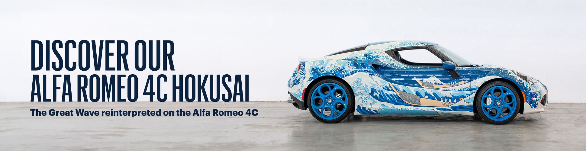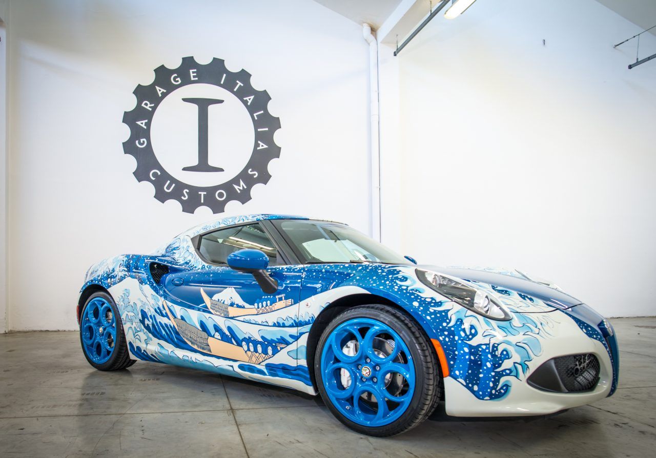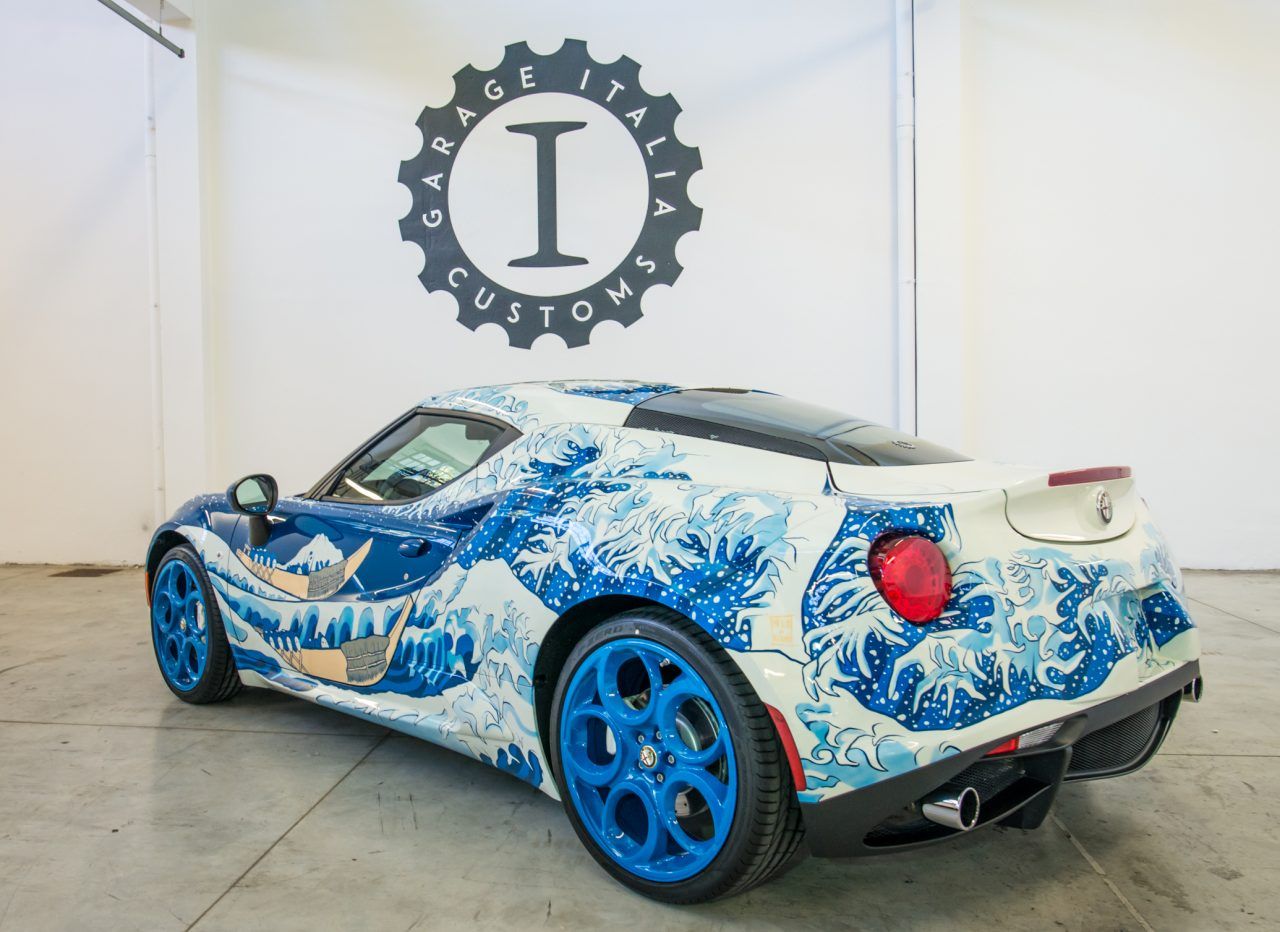 Tutti sanno che il Biscione milanese è un marchio molto popolare in Giappone. Qualche anno fa, in uno dei primi progetti di Garage Italia, abbiamo voluto rendere omaggio alla cultura giapponese, unendo l'arte nipponica a competenze tutte italiane nell'artigianato di alta qualità. Il risultato dello scontro creativo di know-how è un'Alfa Romeo 4C completamente personalizzata, nella livrea così come negli interni.La livrea, interamente realizzata a mano, riproduce una delle opere d'arte giapponese più famose al mondo, “La Grande Onda”, di Katsushika Hokusai.