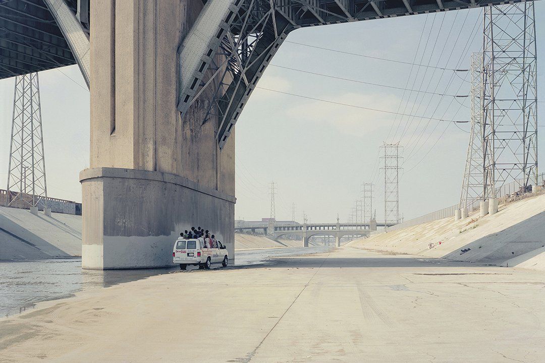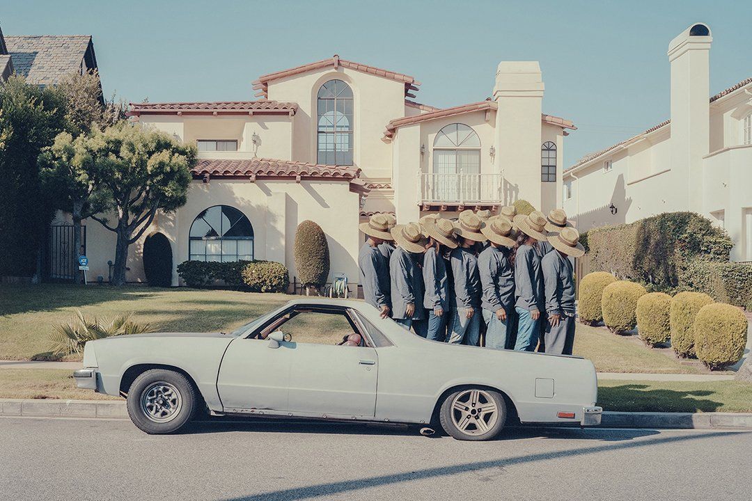 Ognuno degli scatti rende omaggio ai quartieri in cui è stata scattata la fotografia. Per esempio a Venice Beach, i giocatori di basket si riversano fuori da una minuscola Fiat 500 d’epoca, in riferimento ai famosi campi da basket locali del quartiere. In un altro scatto, lavoratori immigrati riempiono un furgone bianco parcheggiato di fronte a un prato immacolato a Beverly Hills.Cars and Bodies offre anche una critica alla cultura automobilistica tristemente assurda di Los Angeles, una città in cui quasi tutti guidano, per la maggior parte da soli.
