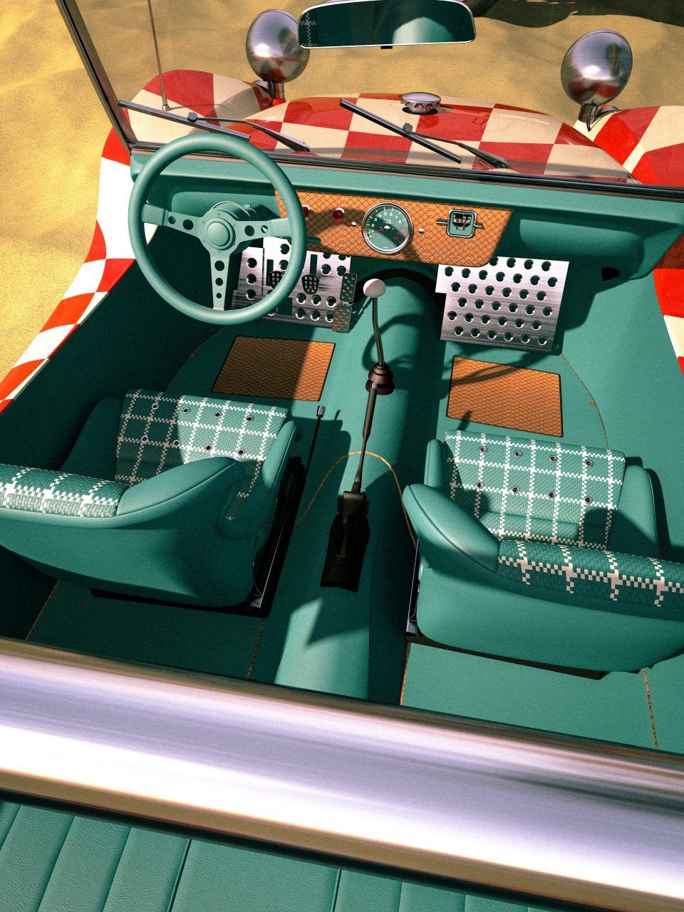 Siamo qui per onorare i suoi prodotti iconici e più nello specifico, la Slip On. La nostra scelta è caduta sull’altrettanto iconico beach buggy Meyers Manx. Il Buggy così come la Slip on fanno parte di quegli oggetti che sembrano disegnati per essere personalizzati. Nella palette di colori scelta non poteva mancare l’iconico pattern checkered messo a contrasto con gli interni ed i cerchi in tinta unita. Il buggy è modificato secondo canoni abbastanza tradizionali dello stile californiano. Degni di nota sono il set di cerchi Fuchs, il volante Momo Prototipo, il contagiri Porsche e i sedili contenitivi rivestiti in pelle intrecciata. Uno dei nostri tocchi preferiti è sicuramente il fondo del quadro strumenti, rivestito dello stesso materiale dell’iconica suola Vans “Waffle”.