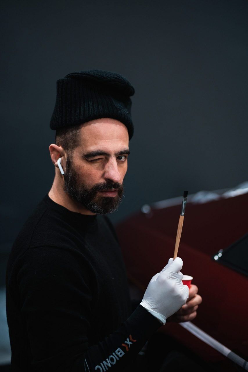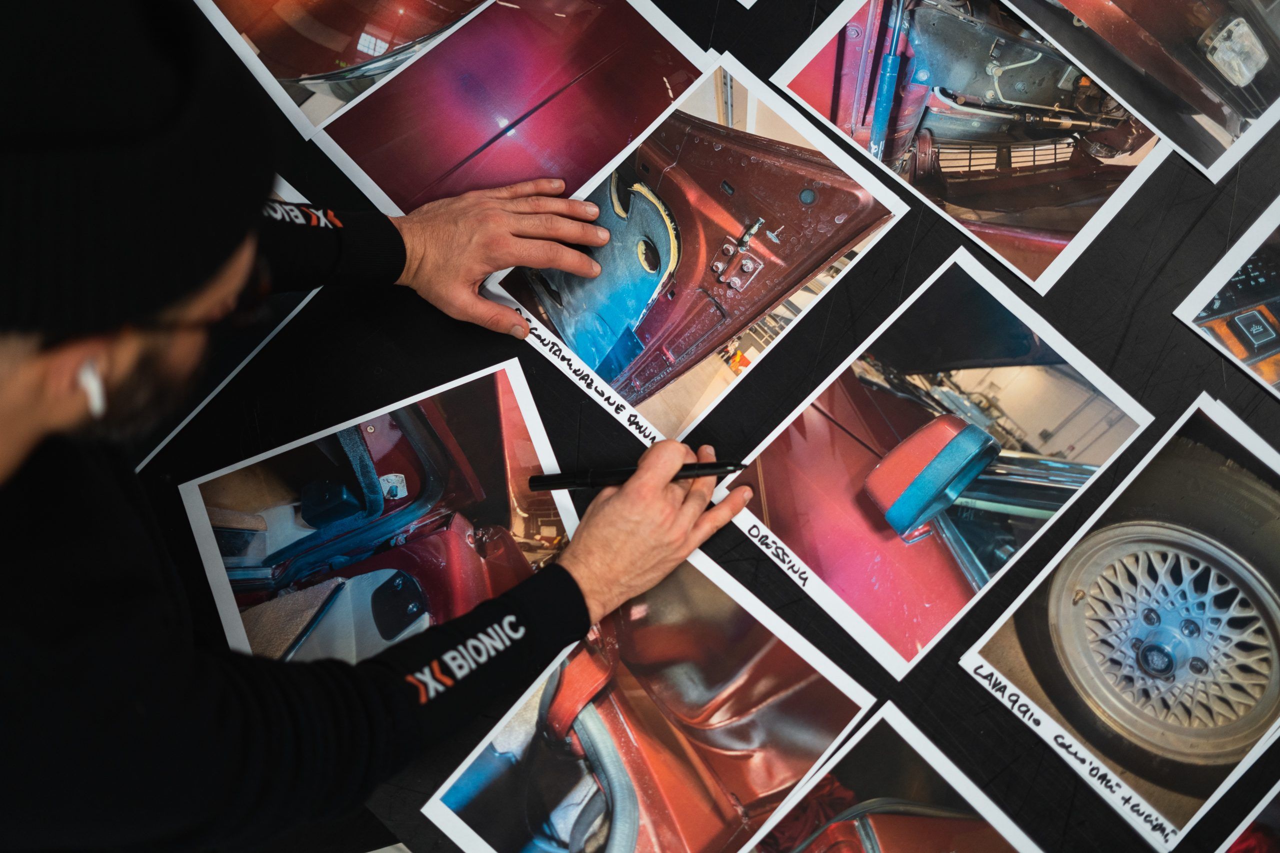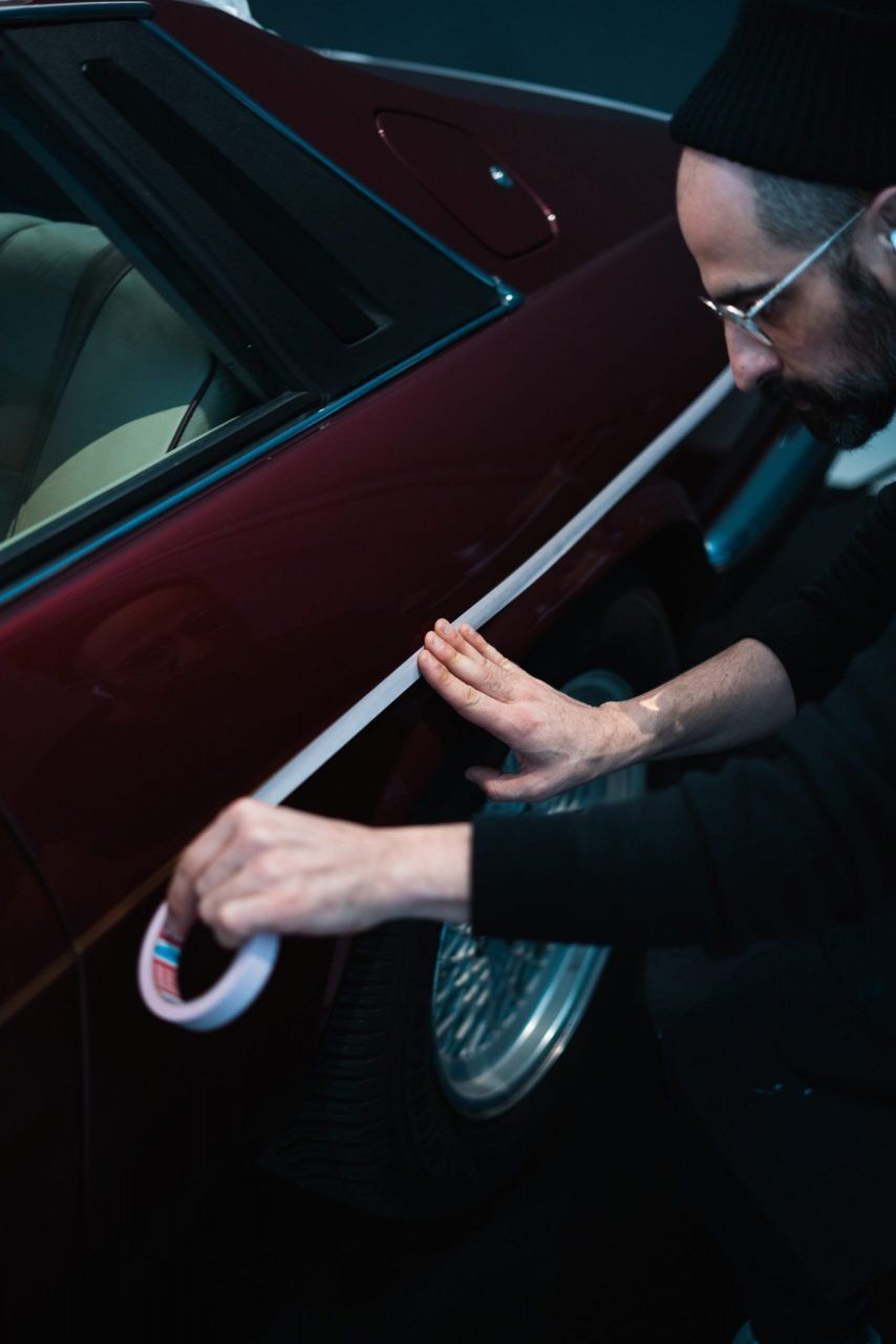 Giorno 4Arrivo all’alba. Lo studio è immerso nel silenzio più assoluto, ne approfitto per un’ulteriore analisi del lavoro fatto ieri e una ricognizione delle aree ancora da lucidare.Fisso le luci laterali per iniziare dalle ampie portiere nastro gli adesivi oro che corrono lungo la fiancata e la guarnizione alla base del giro vetri.Lucidare in verticale, soprattutto ampie superfici, richiede uno sforzo doppio, perché l’utilizzo di una lucidatrice molto grande aumenta il carico sulle braccia. A fine giornata mi ritrovo con le braccia di Braccio di Ferro.