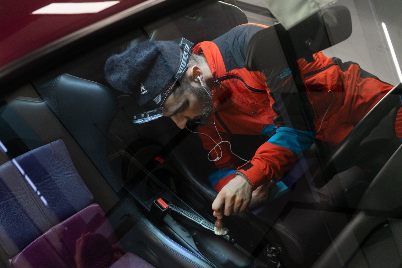 Giorno 5Solitamente i miei Detailing non durano più di 5 giorni, ma con questa Porsche ho preso un feeling speciale e voglio riportarla ad una condizione estetica davvero notevole. Ricomincio quindi dalla lucidatura in quello che solitamente è l’ultimo giorno, cioè quello di inceratura, interni e super finitura!Dispongo le lucidatrici posiziono le luci e comincio a lucidare, finisco il lavoro per le 15.00, senza fare pausa pranzo.Decido poi di rilavare l’auto per liberarla da polvere di lucidatura ed eventuali aloni rimasti sulla carrozzeria, quindi tolgo le nastrature di carta e procedo, Il lavoro è stato eseguito ad arte, ora la carrozzeria è rinata, appare riflettente, liscia e il colore senza i graffi risplende nel suo tono originale, più intenso e scuro. I’m super proud!Ahimè, il tempo è tiranno e ora devo iniziare gli interni: pulisco lo studio e cambio carrello, preparo tutto il necessario per pulire gli interni. Spazzole per la pelle, detergente per le parti plastiche, l’olio di cocco per restaurare le guarnizioni in gomma ormai schiarite dal tempo.