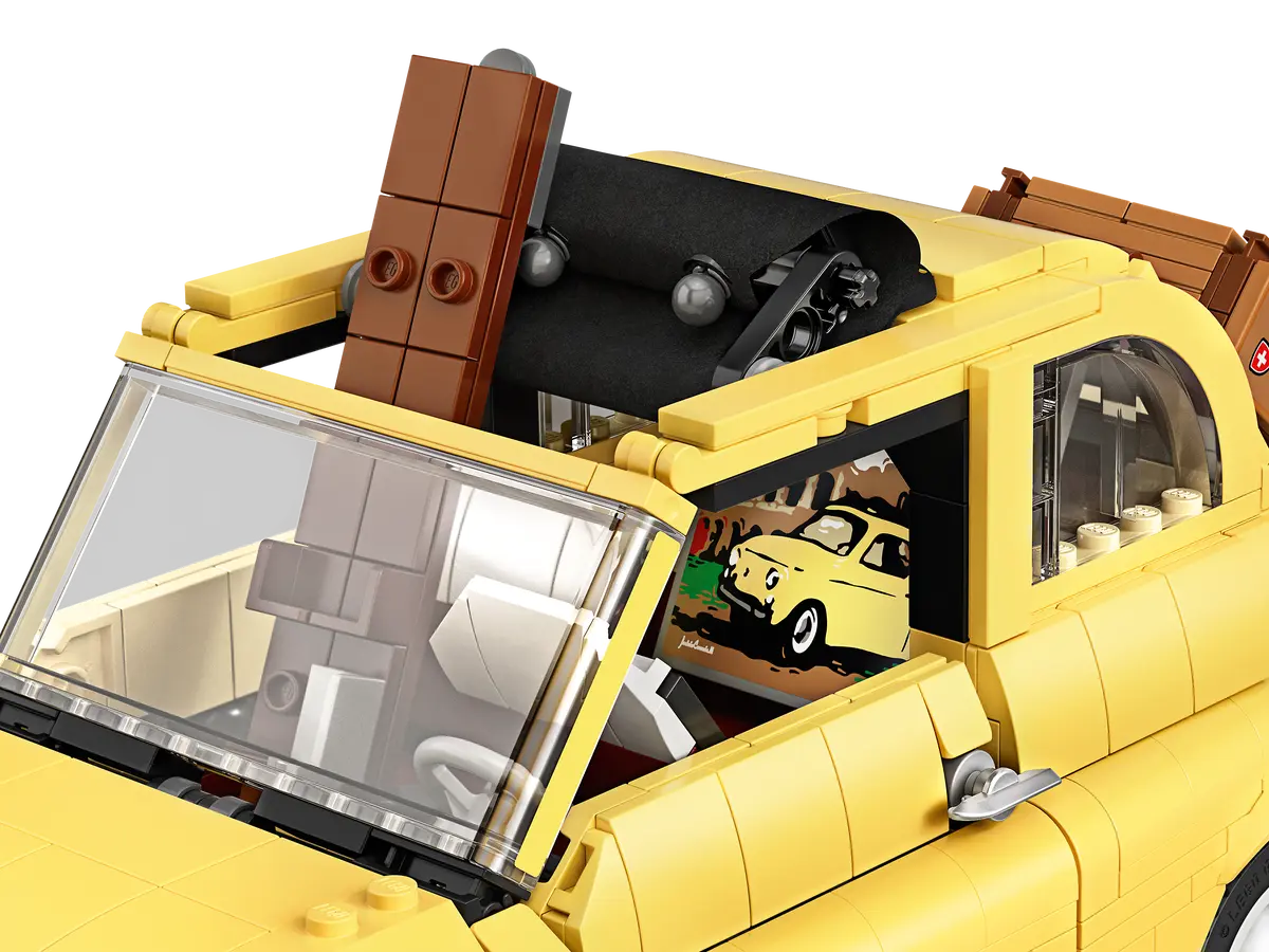Caratterizzati da kit basati sui veicoli più leggendari, rinomati per il loro design senza tempo e prestazioni eccezionali, puoi immergerti nel regno dell'eccellenza automobilistica mentre assembli ogni dettaglio pezzo dopo pezzo. Lasciati ispirare e buona costruzione!1. LEGO Fiat 500Ricca di fascino italiano e con un assaggio della “dolce vita", la LEGO Fiat 500 rappresenta una vera leggenda del design automobilistico. Potrai apprezzare l'esperienza di costruzione offerta da questo kit basato su l'icona degli anni '60 ed apprezzarne i dettagli autentici in mattoncini LEGO, dal portapacchi con la valigia agli interni dettagliati, il tetto apribile, le portiere, il cofano e il bagagliaio. Per completare il tema, il modello include un cavalletto pieghevole con un pennello, una tavolozza e un piccolo dipinto dell'auto davanti al Colosseo.