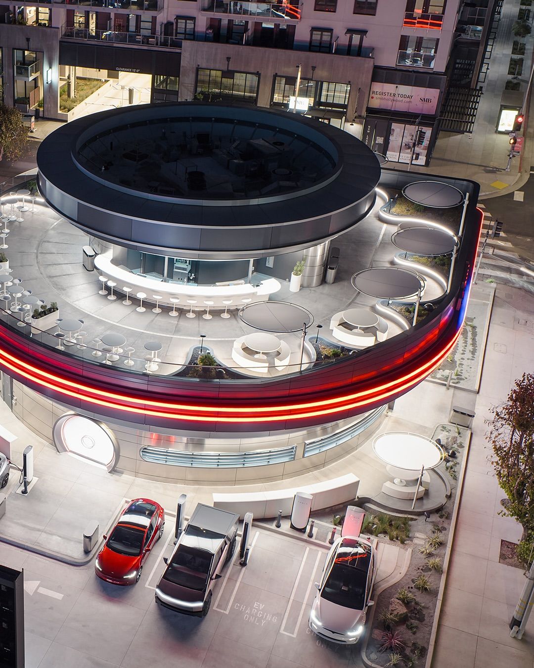 Al Porsche Experience Center di Los Angeles, il Restaurant 917 e lo Speedster Café offrono due modi diversi di assaporare lo stile di vita Porsche — entrambi curati con la stessa attenzione ai dettagli che distingue le auto in pista.Affacciato sul circuito ad alte prestazioni, il Restaurant 917 è uno spazio di fine dining contemporaneo che prende il nome dalla leggendaria Porsche 917, protagonista delle vittorie alla 24 Ore di Le Mans del 1970 e 1971, un punto di svolta nella storia del marchio. Guidato dallo chef esecutivo Matt Lee, il menu stagionale unisce tecnica classica e sapori audaci di ispirazione internazionale — serviti con precisione, in un ambiente che domina la pista.Al piano inferiore, lo Speedster Café offre una sosta più rilassata ma altrettanto curata: panini freschi, dolci fatti in casa ed espresso artigianale per chi è sempre in movimento.Che tu abbia appena lasciato il volante o stia semplicemente vivendo l’esperienza da spettatore, entrambe le destinazioni offrono un assaggio dell’ospitalità firmata Porsche — dove ogni dettaglio è progettato per esaltare l’esperienza.4. Tesla Diner – Los Angeles, California