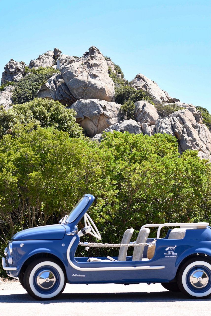 Questo particolare punto di blu, colore dominante della baia, è anche il colore della 500 Jolly Icon-e che Garage Italia ha realizzato appositamente per la struttura, circondata dalle acque cristalline e dalla spiaggia, protetta da ginepri e cespugli di mirto, la tipica macchia sarda che adorna la baia, contribuendo a creare l’atmosfera unica per uno dei paesaggi più belli del Mediterraneo. Siete pronti ad esplorare queste meraviglie a bordo della nostra 500 Jolly Icon-e blu Cala di Volpe