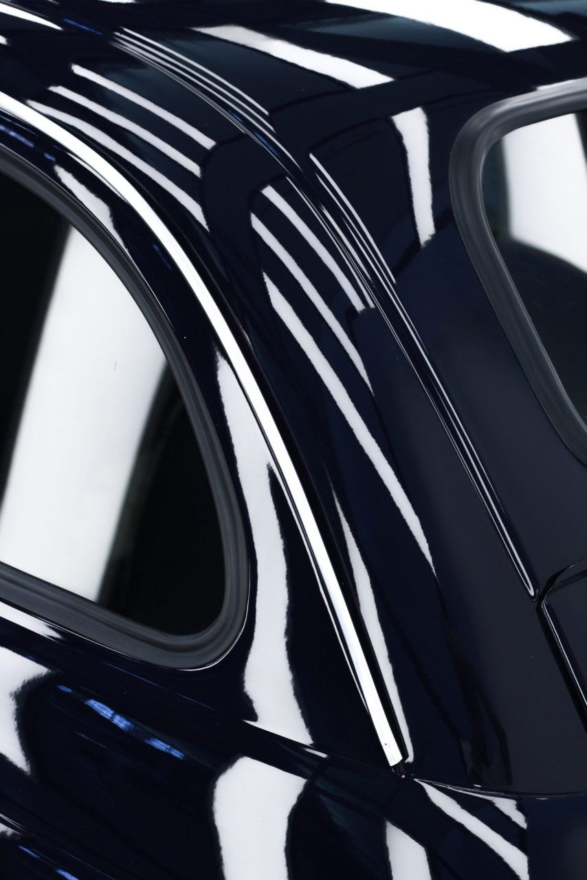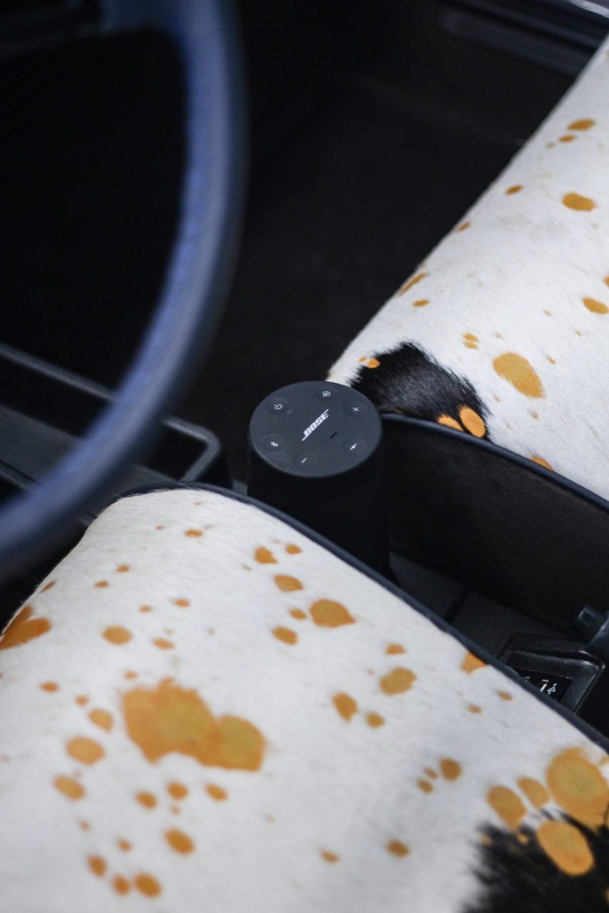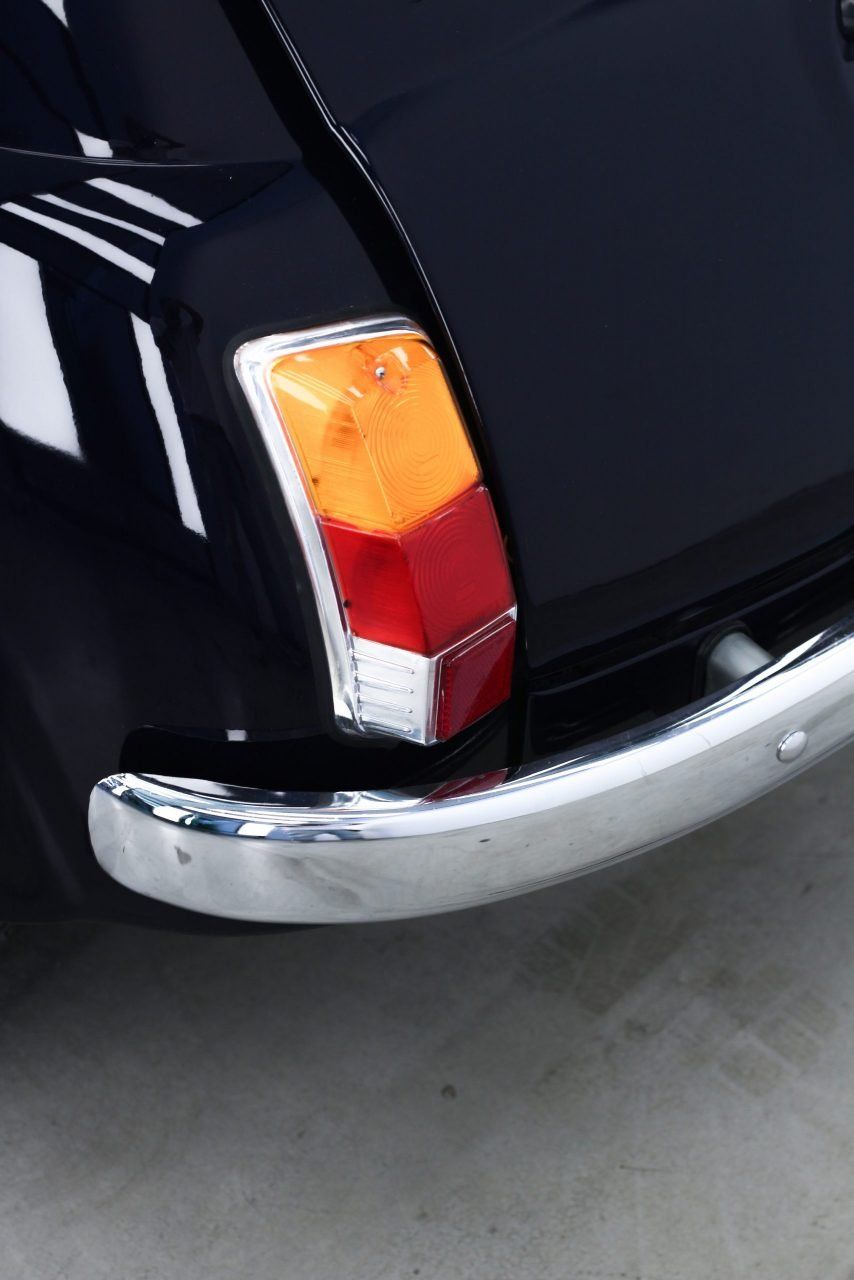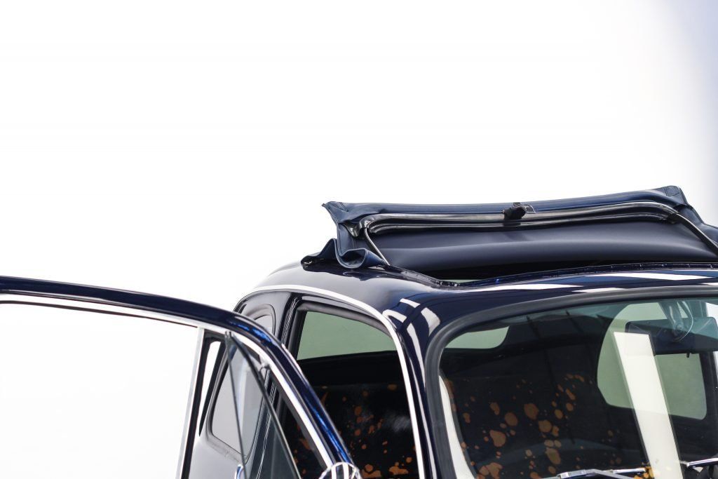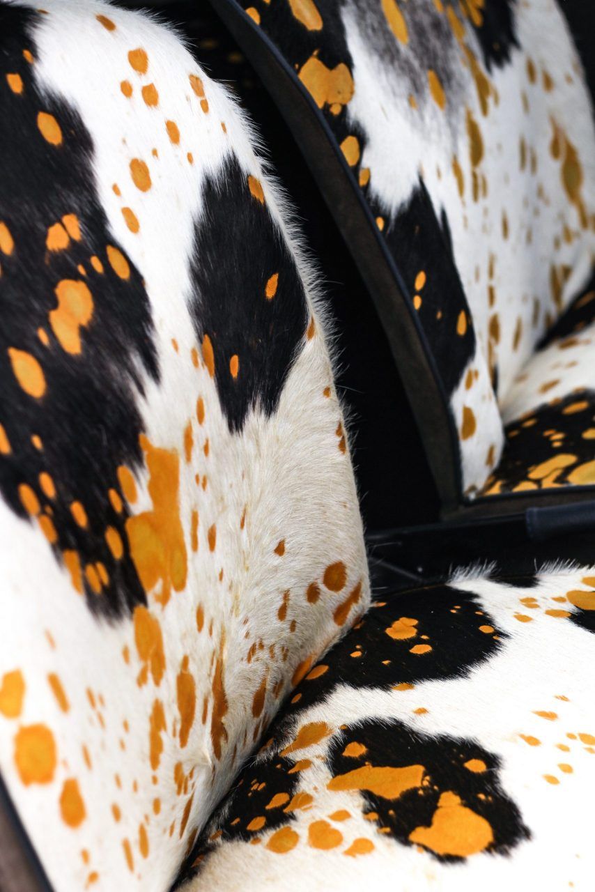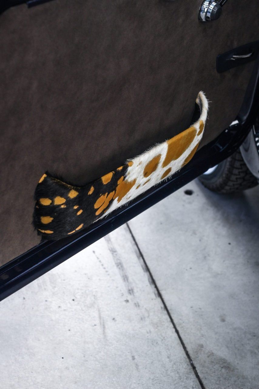 Un colore così sobrio e versatile come il blue Pozzi nella carrozzeria fa da contraltare all’eccentricità degli interni.Personalizzazione completa con l’utilizzo di due pelli Foglizzo: Suede Marrone e Cavallino effetto muccato e macchiato. Nuova moquette e tappeti, entrambi in Alcantara. Capotte Blu tendente al Blue pozzi.