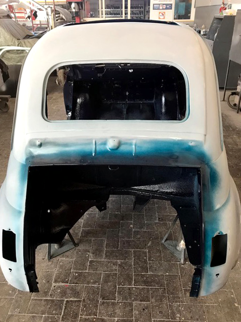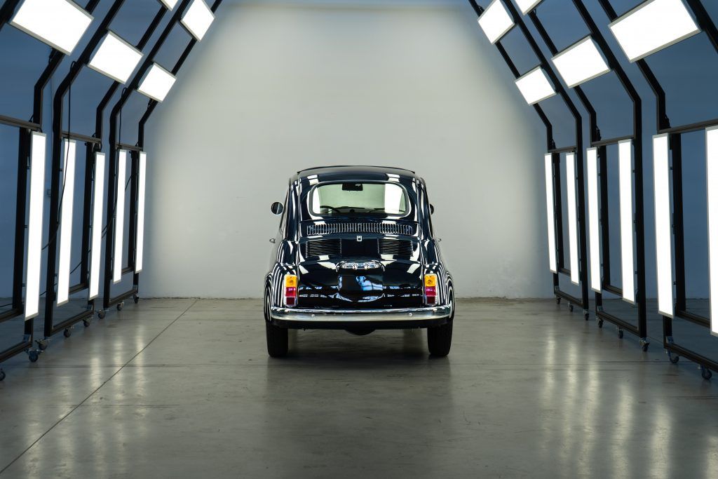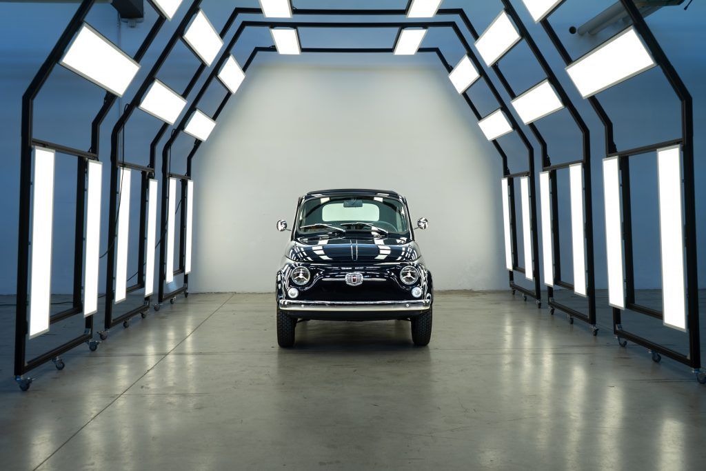 Grazie ad un’implementazione dell’unità elettrica siamo riusciti a garantire alla vettura una potenza ed autonomia superiore rispetto alle trasformazioni standard.Per gli interni, abbiamo provveduto ai seguenti interventi: verniciatura R-M Paint colore Blue Pozzi, installazione ruote classiche con bordo bianco, proprio come quelle che monta una delle nostre Jolly, oscuramento dei vetr